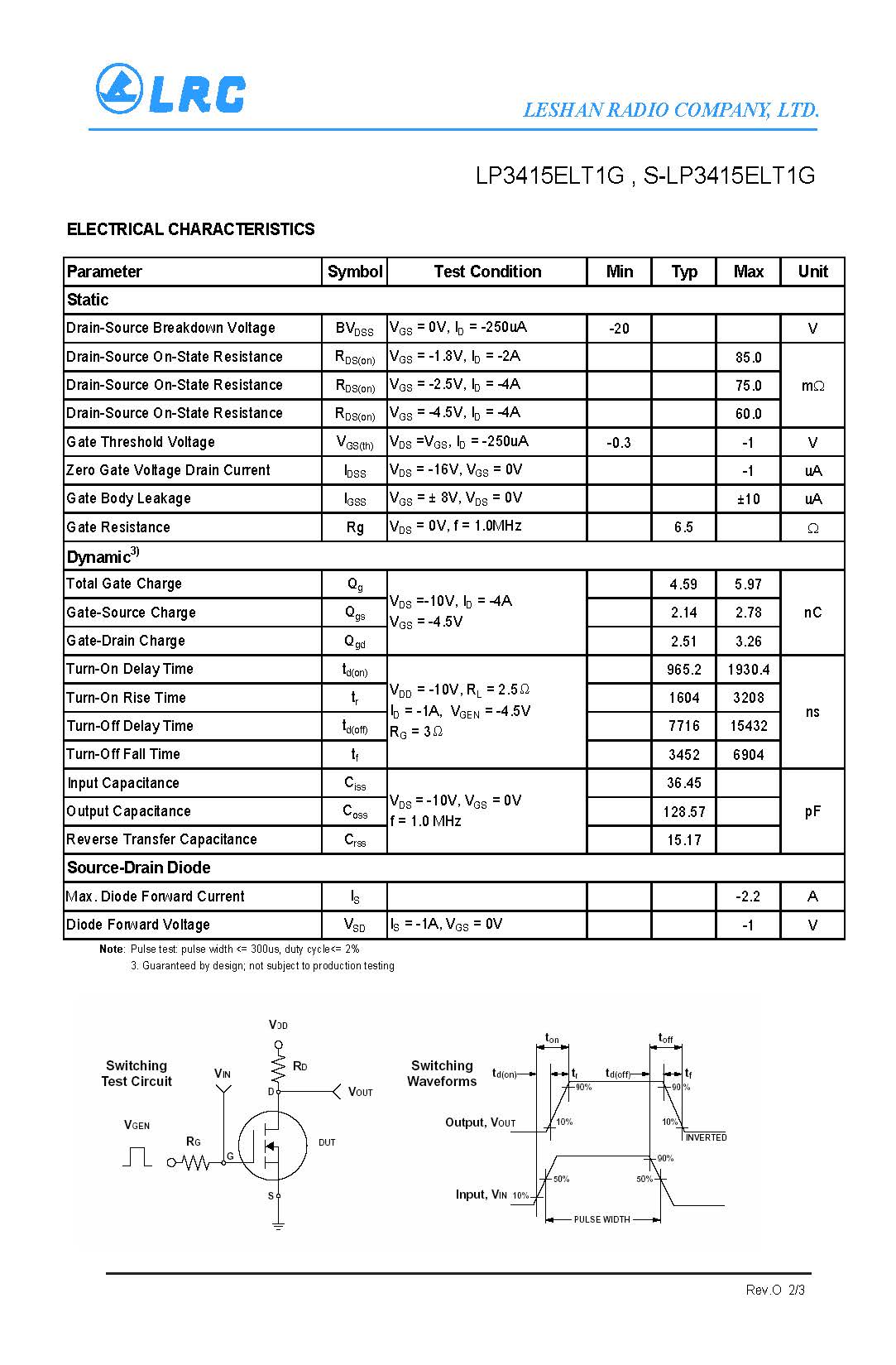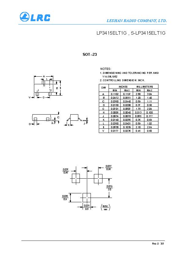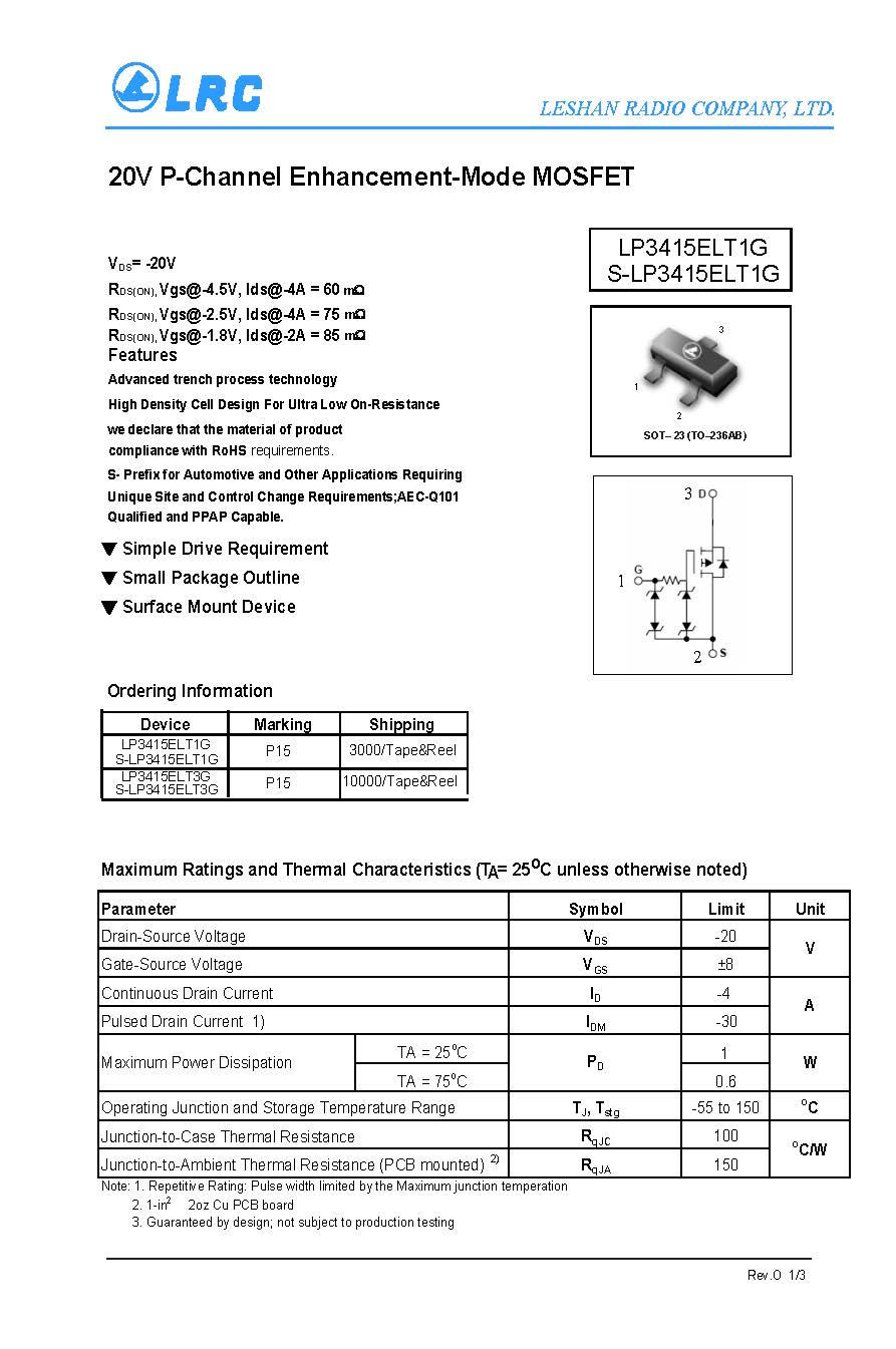 LP3415ELT1G SOT-23 P-Channel(with ESD) 20V LRC MOS管