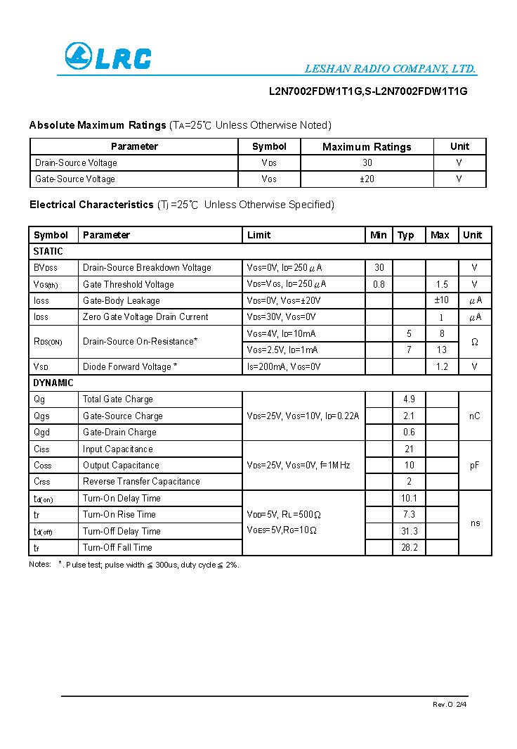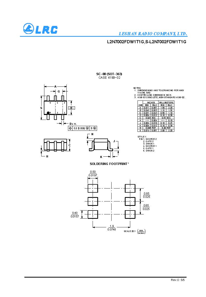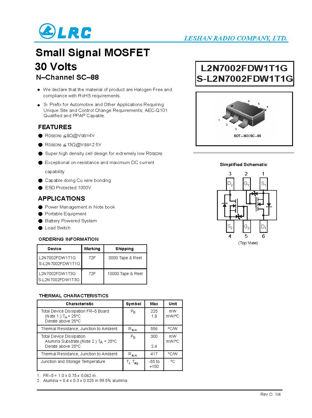 L2N7002FDW1T1G SC-88 30V N-Channel(with ESD) LRC MOS管