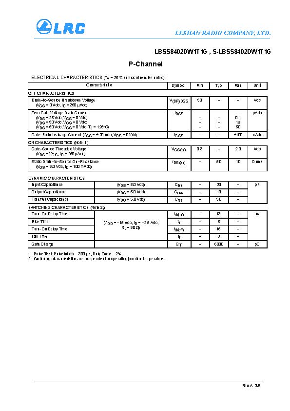 LBSS8402DW1T1G SC-88 50V N-Channel/P-Channel LRC MOS管
