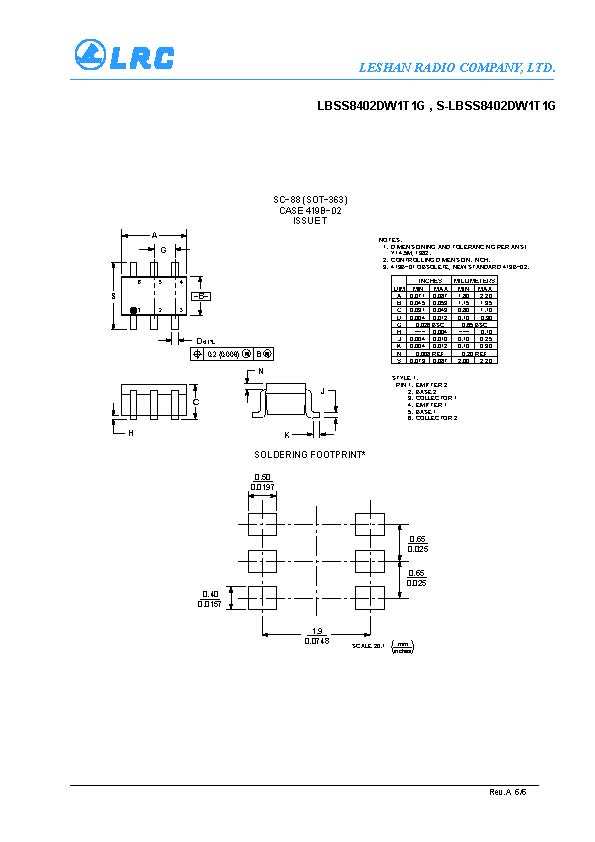 > LBSS8402DW1T1G SC-88 50V N-Channel/P-Channel LRC MOS管