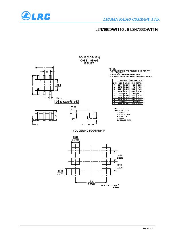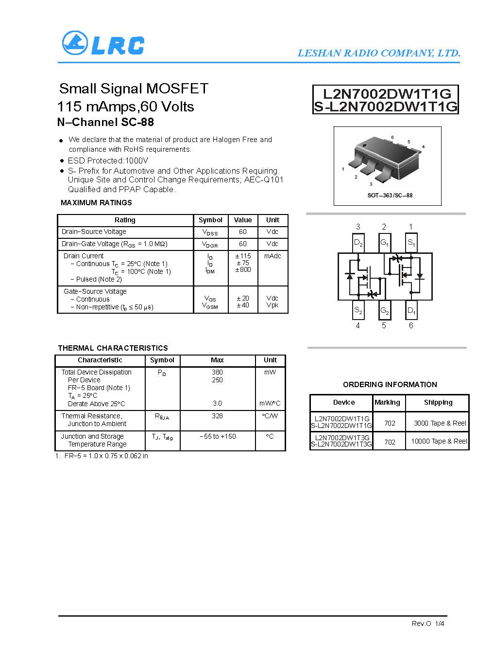 > L2N7002DW1T1G SC-88 Dual-N-Channel(with ESD) 60V LRC MOS管