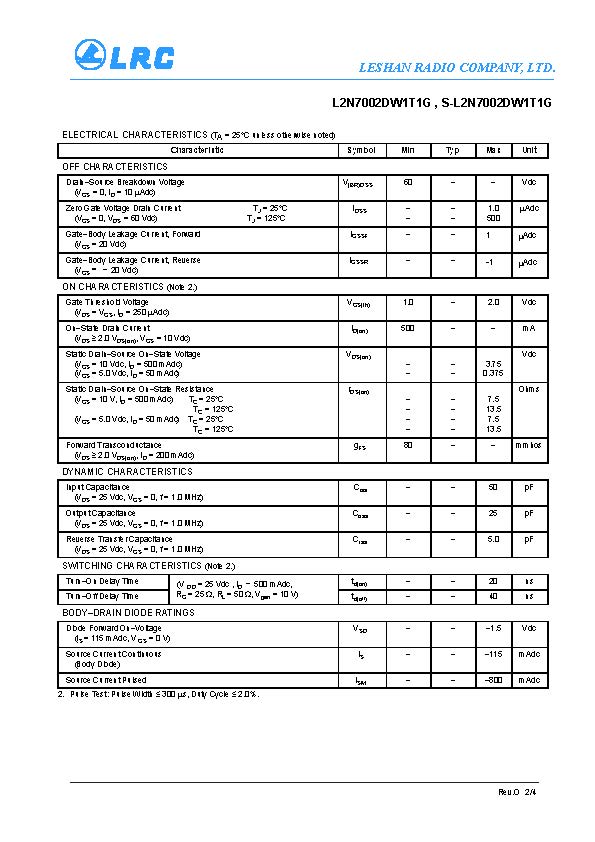 L2N7002DW1T1G SC-88 Dual-N-Channel(with ESD) 60V LRC MOS管
