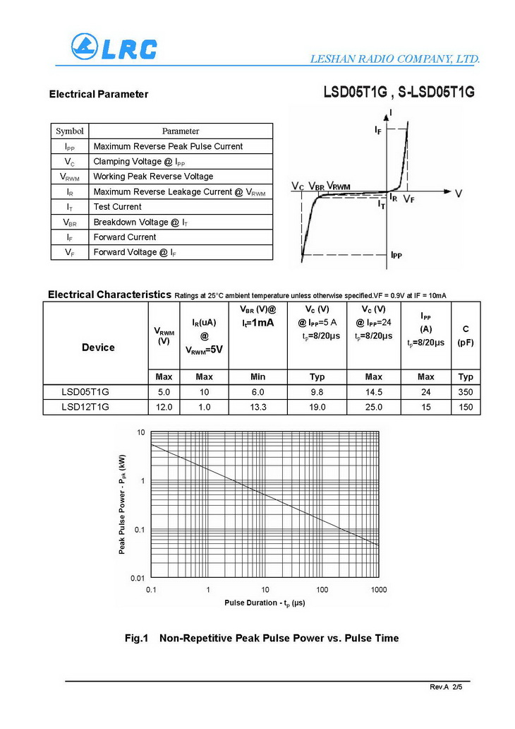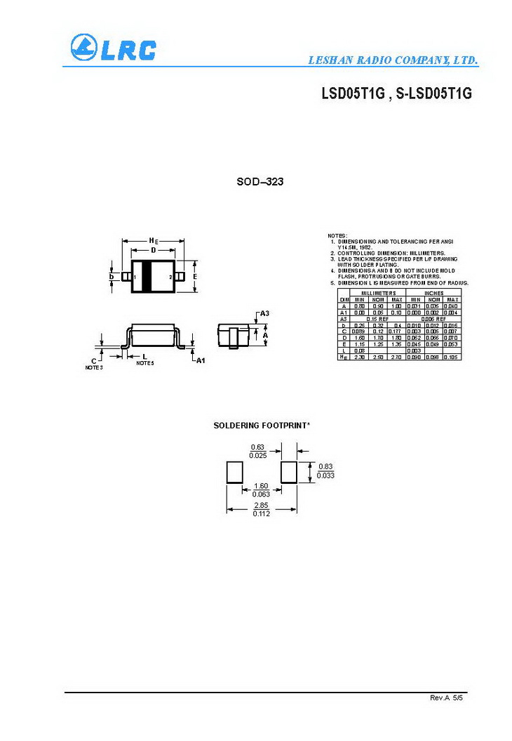 > LSD05T1G VRM 5V VC 14.5V CJ 350pF SOD-323 LRC通用ESD保護二極管