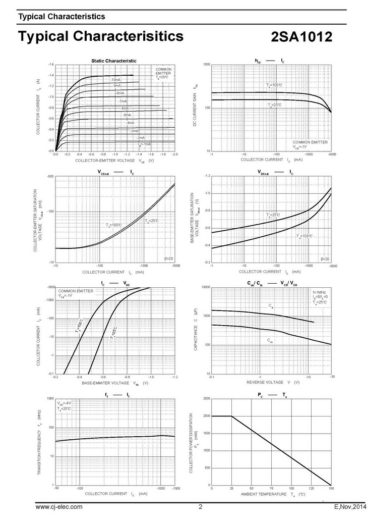 > 2SA1012 PNP 2000mW IC=5000mA BVCBO=60V TO-220-3L 長電 開關放大晶體管
