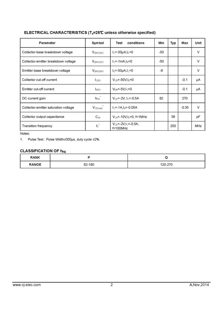 2SA1012B PNP 1250mW IC=2000mA BVCBO=50V TO-252-2L(4R)長電 開關放大晶體管