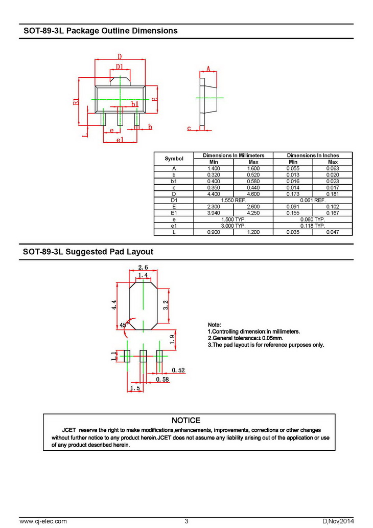 > 2SA1013 PNP 500mW IC=1000mA BVCBO=160V SOT-89-3L 長電 開關放大晶體管